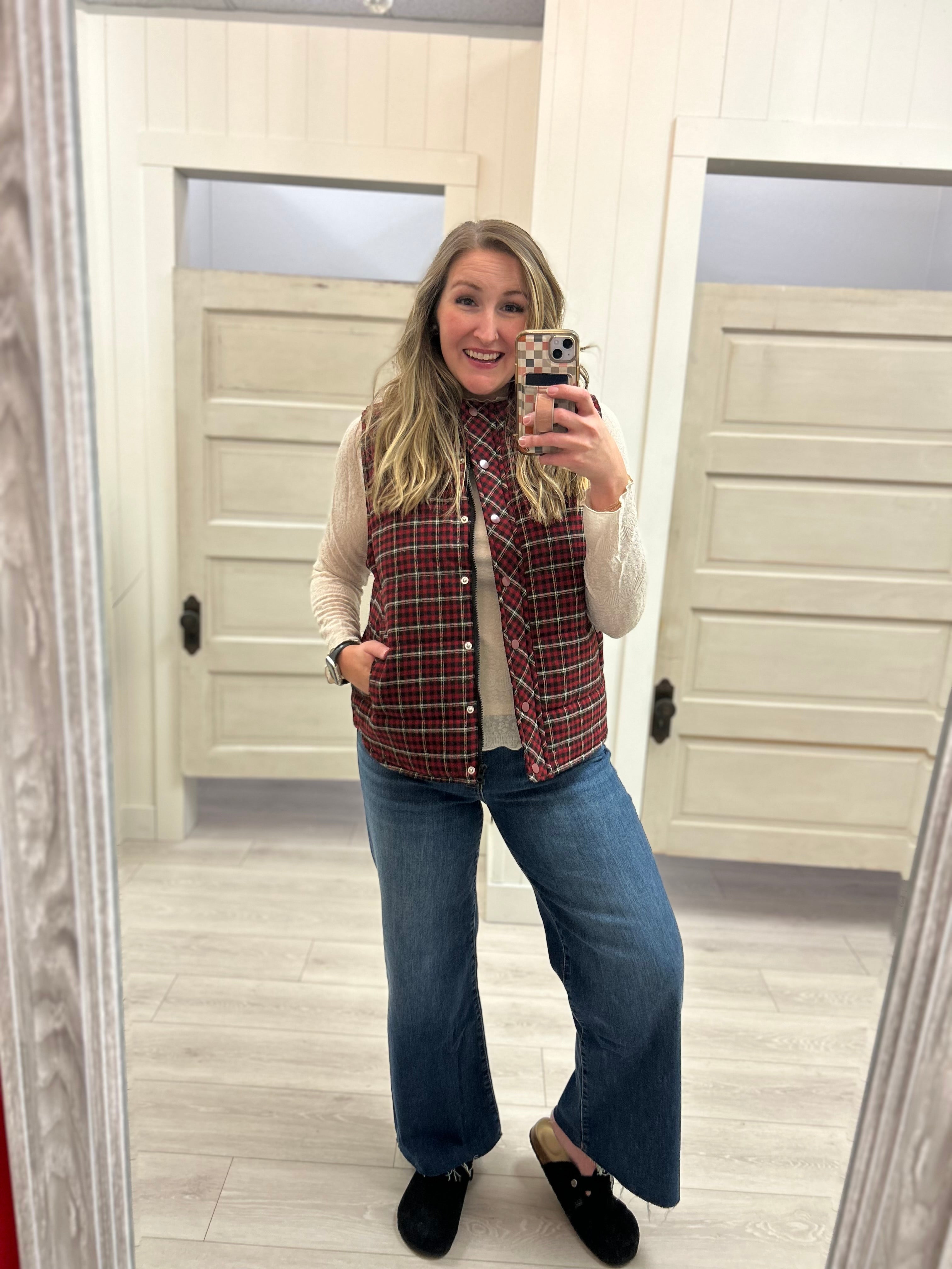 Layer up in style with this gorgeous Plaid Vest! This versatile piece is the perfect addition to your wardrobe, adding instant polish and warmth to any outfit without the bulk of a full jacket.