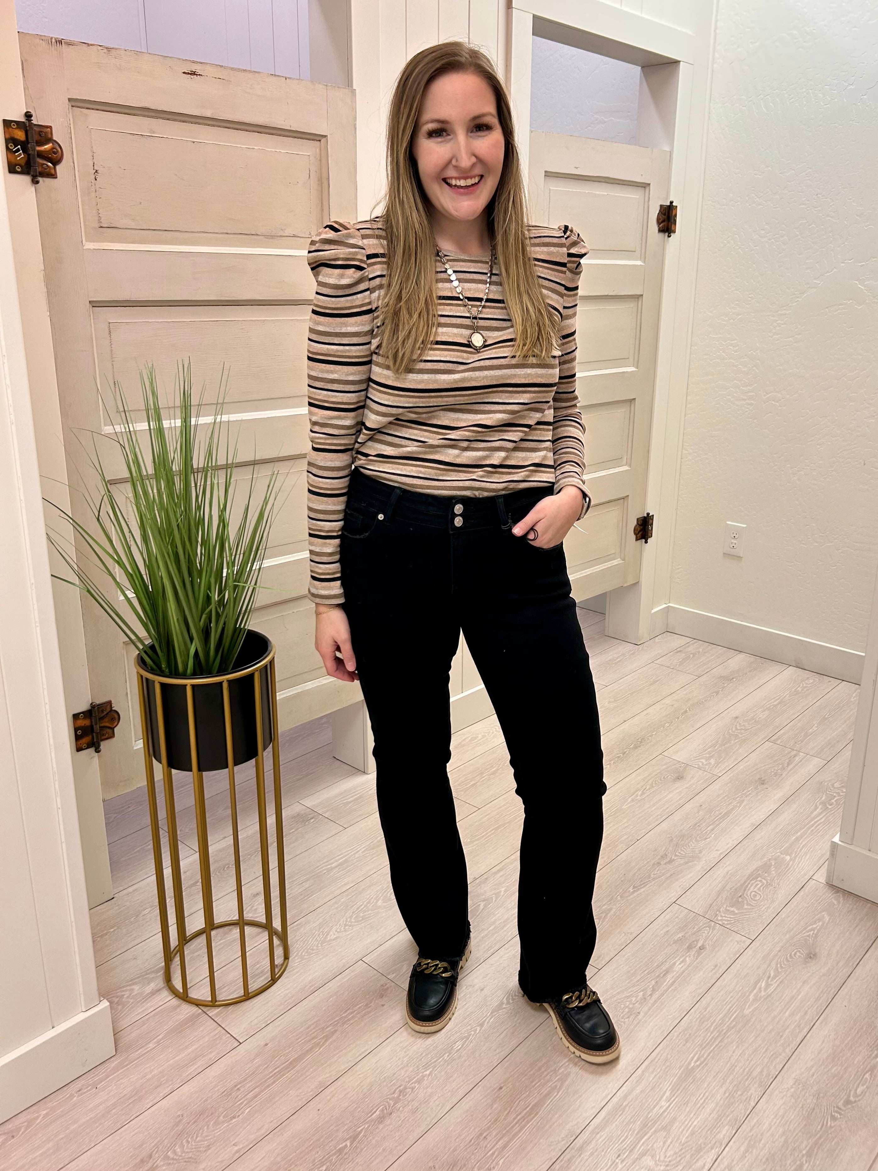 Styling Ideas: Pair these black boot cut jeans with a tucked-in blouse and heels for a polished look, or keep it casual with a simple tee and sneakers. They look amazing with boots (hence the name!), but also work beautifully with flats or sandals. The slim boot cut design is universally flattering and works for any body type!