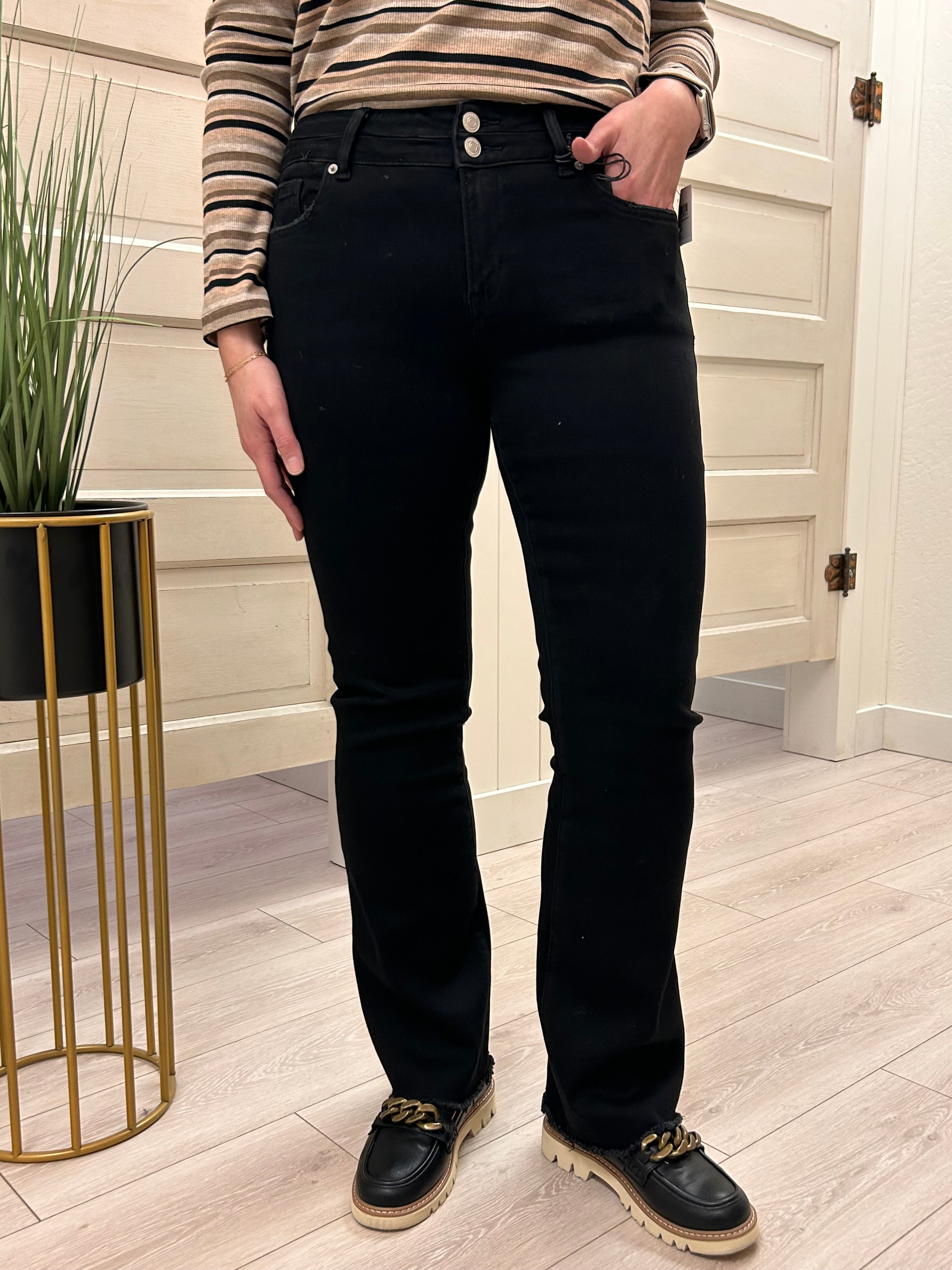 These Mica slim boot cut jeans are a wardrobe essential that combines timeless style with modern comfort. The classic black color and flattering fit make them perfect for building countless outfits!